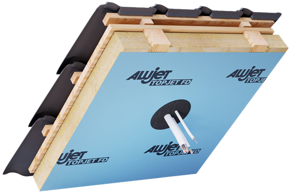Die ALUJET Kabelmanschette klebt auf allen ALUJET Dampfbremsbahnen, ALUJET Unterspann- und Unterdeckbahnen sowie ALUJET Fassadenbahnen.