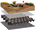 Flächendränage für Dachbegrünungen. Die Druckbelastbarkeit ist für Grünflächen ausgelegt.