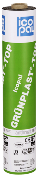 Elastomerbitumen-Schweißbahn mit integriertem Durchwurzelungsschutz, Rillen-VARIO und Sicherheitsnaht als 1. Abdichtungslage.
