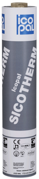 Elastomerbitumen-Trenn- und Dampfsperrbahn mit oberseitigen THERM-Streifen, roter SYNTAN®-Beschichtung und doppelter Sicherheitsnaht mit SK-Streifen