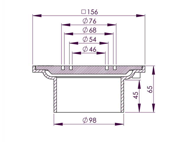 Aus Polyamid, mit Endrost aus Aluminium, zur Aufnahme von Fallrohren DN 50 und DN 70, höhenverstellbar von 40–80 mm. Kann durch Absägen gekürzt werden.
