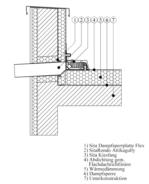 Haupt- und Notentwässerung durch die Attika, wenn die Entwässerung nicht durch innenliegende Fallrohre erfolgen soll.