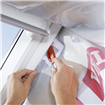 Auf die Fenstergröße abgestimmter Folienkranz für den dampfdichten Anschluss an die dachseitige Luftdichtigkeitsschicht und Dampfsperre.
